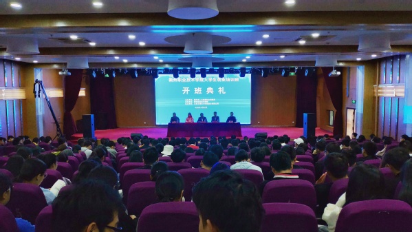 创业学院院长黄恒荣在开班典礼上做了创业培训动员讲话,他提到创业教育对于大学生来说能够培养创业意识,增强自信;同时也为同学们了解如何评估市场,选择合适的创业项目,如何筹集资金等方面提供帮助;还能够提高与人沟通,营销自己的能力,有效避免创业风险,增强创业意识。希望同学们能够安排好时间,按要求参加培训。
