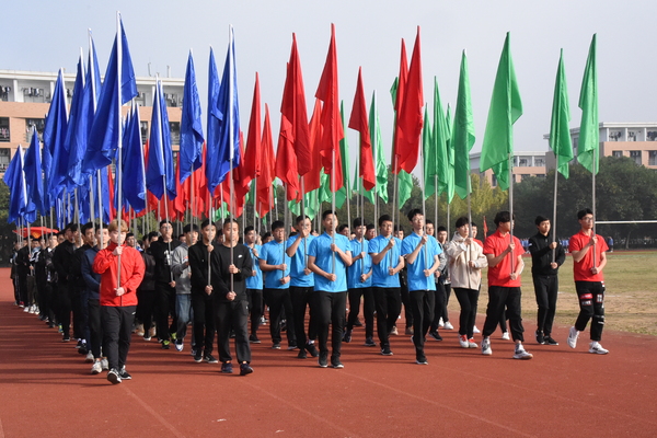 五星红旗冉冉升起,我校第十届体育运动会也由此缓缓拉开帷幕。党委委员,副校长傅元勋致开幕词。他表示,本届运动会主题是“拼搏青春,健康有礼”,通过这次运动会的举办,进一步深化健康理念,弘扬时代体育精神。他要求全体裁判人员严格遵守“公平、公正、公开”的原则,恪尽职守,公正裁判;希望全体运动员发扬“更快、更高、更强”的奥运精神,遵守比赛规则,服从裁判,顽强拼搏,赛出风格、赛出水平。运动员和裁判员隆重宣誓,校长江爱民宣布第十届体育运动会开幕。