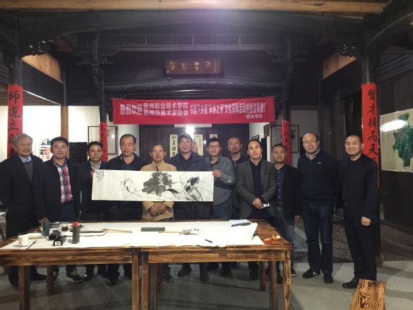 11月9日下午,我校书画协会会同衢州市美协书画家一行11人来到常山县招贤镇高埂村箬溪自然村,开展“书画下乡”活动。大家参观了箬溪村抗日纪念馆,在箬溪村书院创作书画,并向箬溪村捐赠图书300多册。