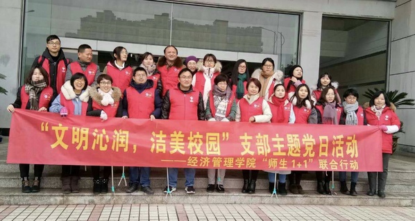 1月2日下午,经济管理学院党员师生开展了“助力全国文明城市创建,打造文明洁美校园”的支部主题党日活动。本次活动主要分为两大板块:清理校园环境、开展文明宣传劝导。
