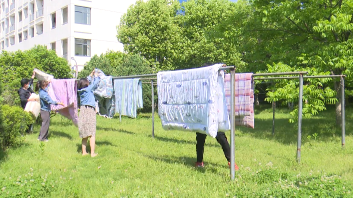 此前,学校各位班主任,向同学们发出需求征集信息,学生通过班级群反馈需求,由辅导员逐一记录。据统计,最多的一天,学校老师共帮学生晒了近800条被褥。学校表示,接下来会继续组织老师在天气晴好的情况下分批次将学生被褥全部拿出来晾晒。