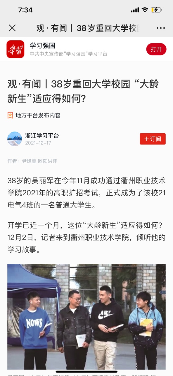 “高职扩招让我圆了‘大学梦’,也给了我一个重新充电、重装出发的契机。”吴丽军说,他很珍惜这个机会。