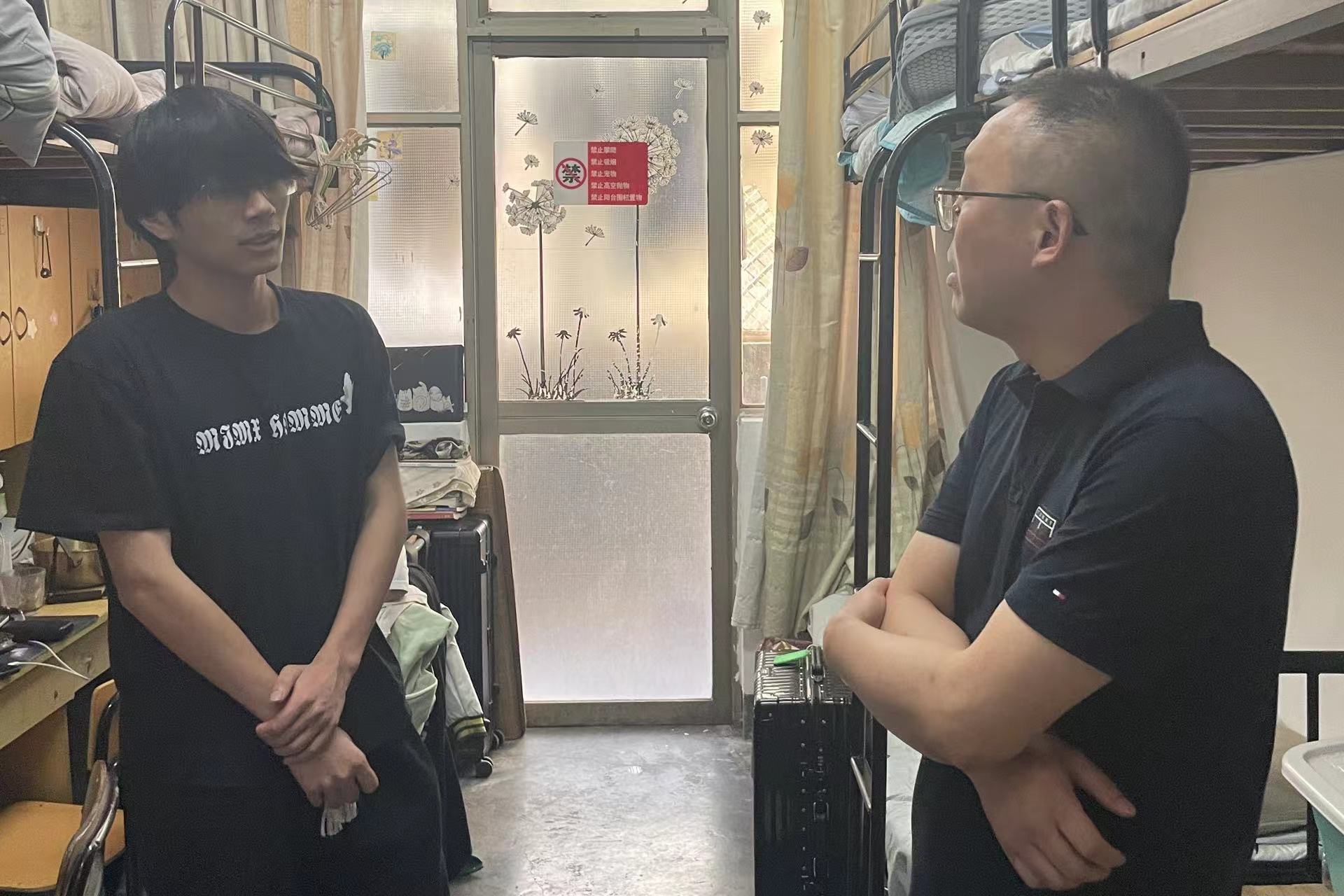 在宿舍检查中,廖建平重点强调了个人财物安全。提醒同学们务必带好宿舍钥匙,要妥善保管好个人证件及物品,切勿随意透露个人信息,谨防上当受骗。返校后,应及时检查宿舍内设施是否完好,如有问题立即报修。此外,明确指出宿舍内严禁私拉乱接电线,禁止使用违规电器,消除潜在的用电安全隐患。