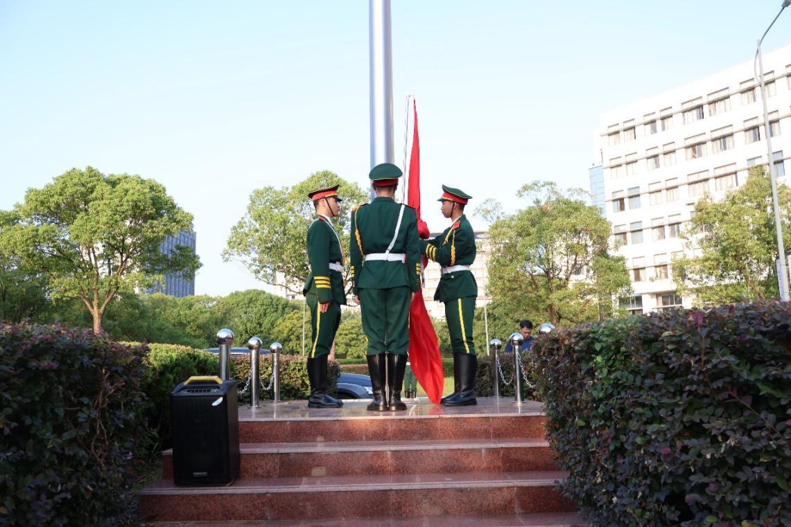 一场庄严而神圣的升旗仪式拉开序幕,全院师生面向国旗庄严肃立,用最饱满的精神状态迎接新的一天。他们展现出了昂扬的精神状态,满怀着对五星红旗的崇敬,表达对祖国的深情厚意。