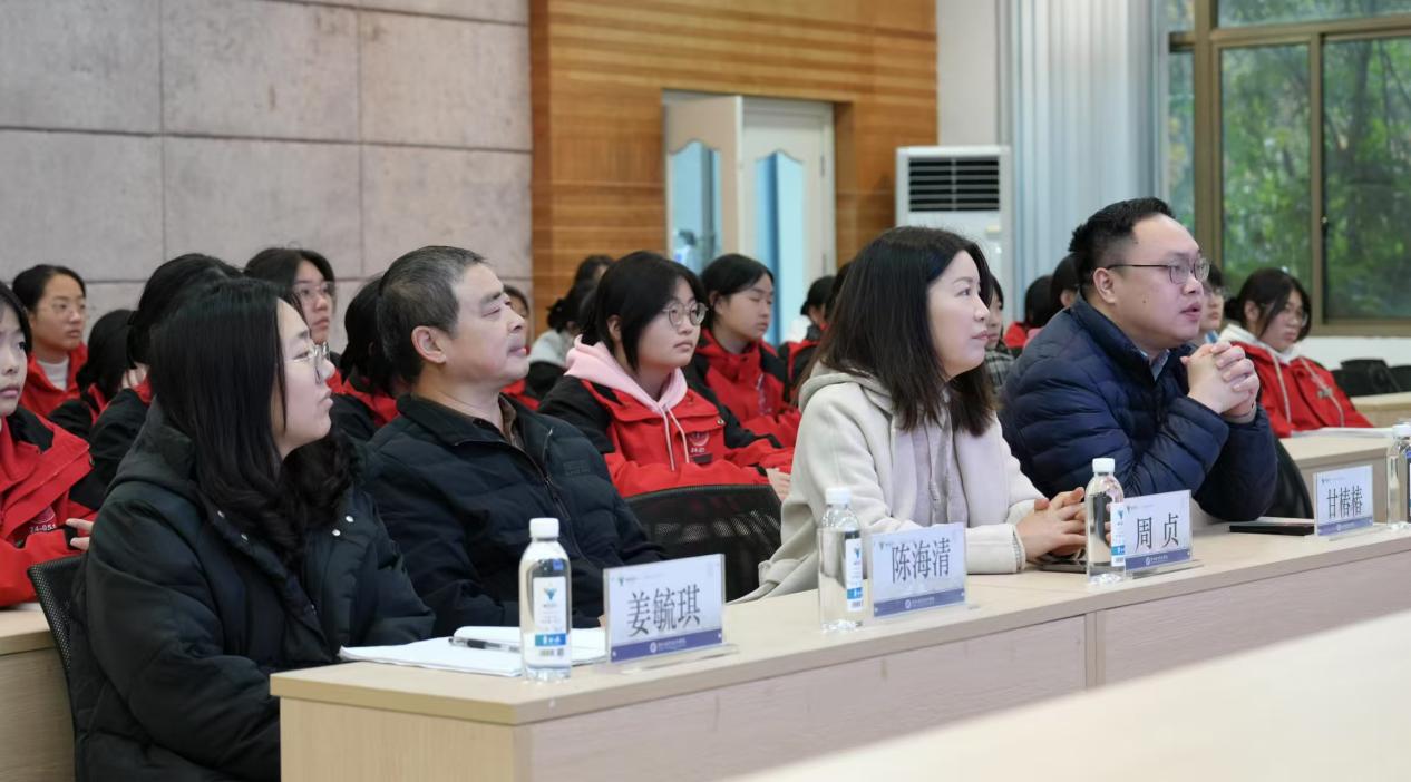 医学院护理专业教师向来校师生介绍了我校概况、护理专业课程学习、职业规划及健康生活等方面内容。衢州护士学校毕业的我校24级新生谢婷婷、王琴同学分享了入学衢职以来的学习生活心得,并就学弟学妹关心的问题进行了现场解答。
