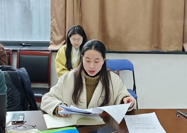 彭晓倩对两项赛事进行了介绍,并传达了学校2025年教师教学能力比赛、学生技能比赛启动大会的会议精神。