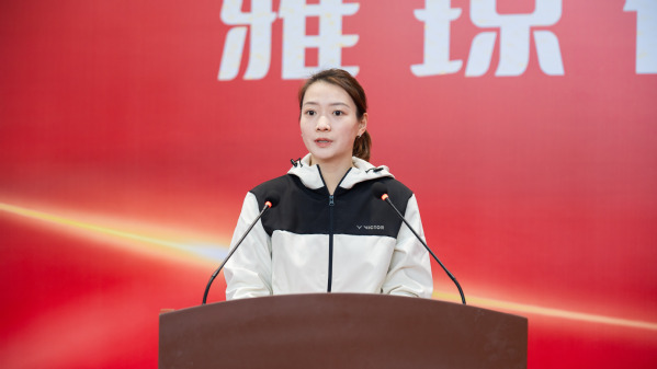 黄雅琼表示,衢职院雅琼体育学院不仅承载着培养优秀运动员的重任,更肩负着传承和弘扬体育精神的使命。在未来的日子里,将与学校全体师生携手并进,以冠军课堂为重要抓手,积极参与课程教学研讨、学生技能竞赛,切实提升教学质量与水平;将积极开展丰富多样的体育交流活动,吸引更多学生参与体育运动,培养德智体美劳全面发展的高素质技术技能人才;将致力于推广羽毛球项目,让更多人了解并参与羽毛球运动,共同推动体育事业发展。