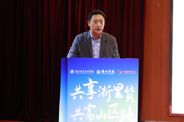 钟政致辞。钟政表示,此次“共享浙里货 共富山区路”活动,以“校企联动”为核心,与“钱江源品牌”的发展理念和实践路径高度契合。活动平台的搭建,将为开化县提供更广阔的销售渠道,让更多人了解和喜爱钱江源品牌农产品;AI公益的融入,也将为品牌推广和产品销售带来新的机遇和可能。期待与两校师生们携手合作,借助同学们的创新思维和专业技能,为乡村振兴注入新的活力。同时,期待与阿里巴巴公益共同探索“共谋、共建、共富”的县域合作新模式,让更多山区特色产品走出浙江,走向全国,为乡村全面振兴贡献更大的力量。