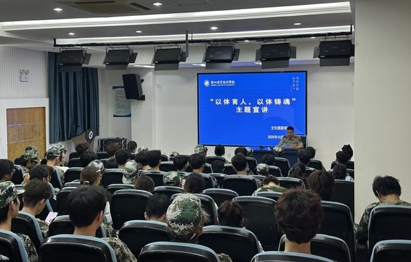 近日,优秀校友(机电工程学院毕业生)、现役武警特战班长方双龙重返母校,以“从体育生到‘军营蜘蛛侠’”为主题,为师生带来了一场“以体育人,以体铸魂”的励志宣讲。文化旅游学院党总支书记李威、副书记邵翔、休闲体育专业主任王俊舰以及学院全体大一新生参加。